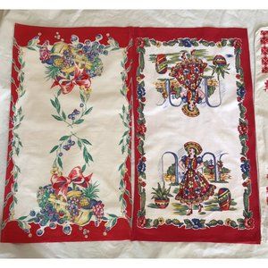 Vintage Linen Woman Dancing , Floral, Fruit Basket Tea Towel lot of 4