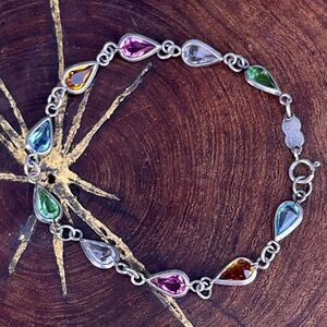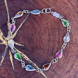 Vintage chain and glass gemstone bracelet. Marked Italy and 925. Has a spring ring clasp. Great minimalist style. Very subtle and unique. Models wrist is small.