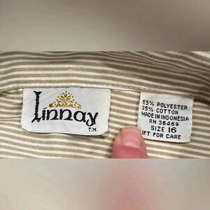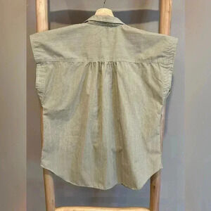Vintage Linnay striped cap sleeve boxy top great details button down pockets size 16 vintage sizes run small my estimate is larger please verify with measurements. Great condition