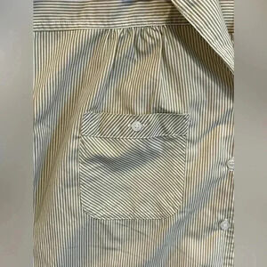 Vintage Linnay stripe boxy cap sleeve button down blouse pockets cream/white
