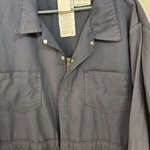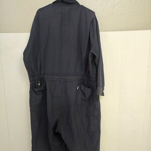 The Vintage Lion Apparel Navy Coverall is a durable and high-quality workwear option made in the USA. This coverall, in size XXLS, is designed for men in the mechanic industry and is made of 100% Nomex IIIA material for maximum protection. With a classic blue color and sturdy construction, this coverall is a reliable choice for those who need reliable and protective clothing for their work. ***There is a hole on the shoulder seam, as shown in the photos. ***