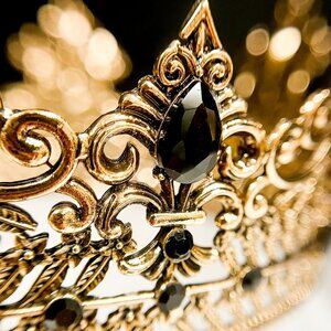 Color: Black Crystal, rhinestones and Gold-plated crown.