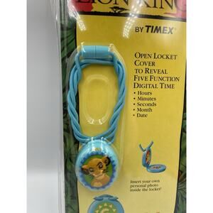 Vintage Lion King Simba Necklace With Locket & Digital Clock By Timex NIP