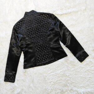 Vintage Lip Service Black Satin Quilted Zip Jacket with Rose Tag