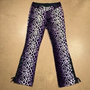 Vintage Lip Service Freaks in Fur Purple Leopard Print Pants Y2K Mall Goth Faux