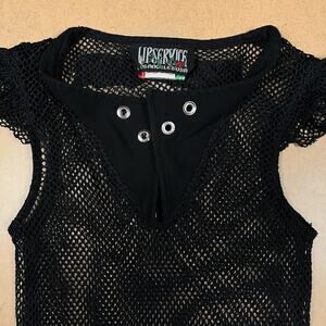 Rare Vintage Lip Service 2002 Cargo Raid "Carlisle's Cargo Cutie" Black Fishnet Top Y2K Goth Blouse