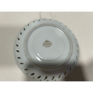 Features: A reticulated (pierced) edge on the saucer and a pedestal base on the teacup.
