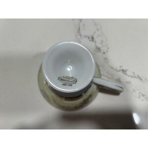 Size: The teacup is 2 5/8” tall x 3 3/4” wide x 4 7/8” long and holds 4 ounces. The saucer is 5 3/4” wide.