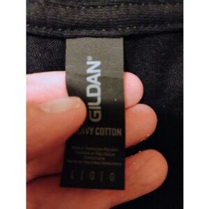 Size large Gildan tag Liquid Blue test print. A Liquid Blue test print shirt is a shirt produced by Liquid Blue that is used as a test run for new designs, colors, or techniques. These shirts are often designed with unique or experimental prints to evaluate the printing process and ensure the quality before mass production.
