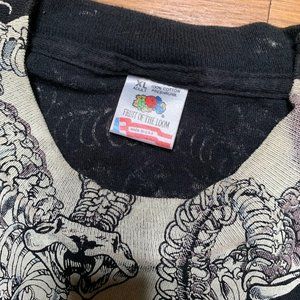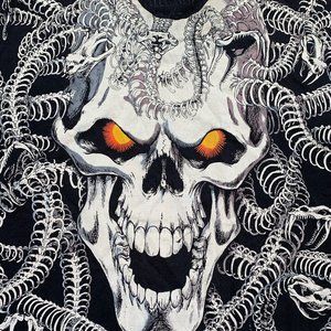 90S Xl 1993 Liquid Blue Medusa Skull Evil Eyes Snake Skeleton Vintage T-Shirt Extra Large Size Total Pattern Travis Single Stitch Black XL All Over Print