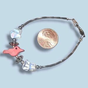 Vintage Liquid Silver Red Mop Carved Bird Bead Bracelet. Condition is Pre-owned - Excellent. Shipped with USPS Ground Advantage.