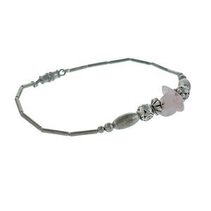 Elevate your wrist with this vintage liquid sterling silver bracelet adorned with rose quartz beads. The delicate combination of sterling silver and soothing rose quartz creates an elegant accessory suitable for any occasion.