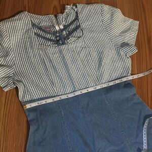 Vintage Lira Denim Blue Gingham Short Sleeve Baby Doll Maxi Dress Y2k Western