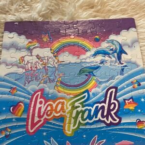 Vintage Lisa Frank fun & funky 108 piece colorful puzzle w/ rainbow, unicorns, dolphin, bunnies, bear, dog, etc….