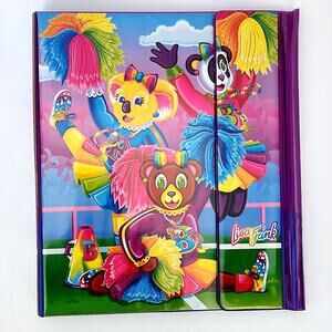 Lisa Frank binder, vintage 90s school supplies, cheer bear binder, rainbow stationery, nostalgic 90s, retro school folder, Y2K office decor, trifold binder, collectible Lisa Frank, kawaii binder, Lisa Frank cheer squad, back to school gift