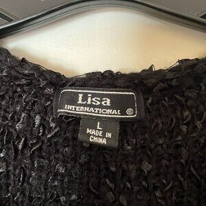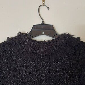🖤✨ Vintage Lisa International Black Textured Knit Sweater with Ruffled Collar | Size L 🖤✨