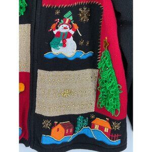 Vintage Lisa International XL Christmas Cardigan Sweater Black Red Green