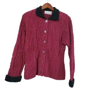 Vintage Lisa Nichols Cardigan Womens Large 90's Burgundy Knit Wool Button Up