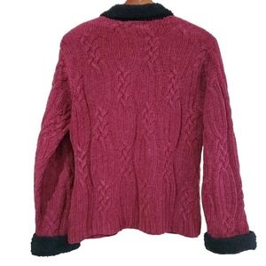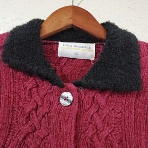 Vintage 90's Lisa Nichols Burgandy Knit Wool Cardigan With Fluffy Collar Large.