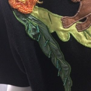 Lisa International black womens top,size Large.Polyester/Cotton. Monkeys are sewn on appliqués with colored beads and crochet and beaded buttons.No damage,excellent vintage condition.Monkeys are made of a suede like fabric. Sleeves are 9 in.Pit to pit 22in.Length 23 in.Washable.Fast ship!