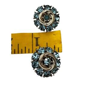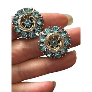 Vintage Lisner Blue Rhinestone Clip On Earrings