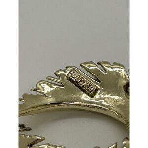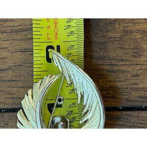 This vintage Listener brooch or pin features a gold-tone, curved feather design with an elegant three-dimensional finish. A 2 inches this brooch adds an understated elegance and timeless appeal to your attire, making it a wonderful addition to your collection.