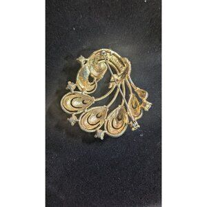 Vintage Lisner Gold-Tone Peacock Feather Brooch With Aurora Borealis Rhinestones