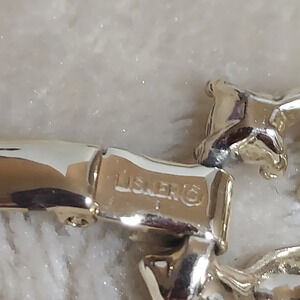 Add a touch of vintage glamour to your outfit with this stunning Lisner bracelet. The piece features a beautiful leaf-shaped design with buckle closure, perfect for adding a pop of color to your wrist. The multicolor purple green yellow rhinestones in aurora borealis finish are surrounded by a cluster of smaller rhinestones, creating a unique and eye-catching look. The bracelet is signed by the designer and made with high-quality materials, ensuring its durability and authenticity. Whether you're dressing up for a special occasion or adding some sparkle to your everyday look, this bracelet is the perfect accessory.