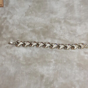 Vintage Lisner Goldtone Leaves Multicolored Crystals Aurora Borealis Bracelet