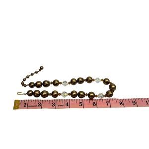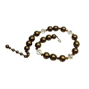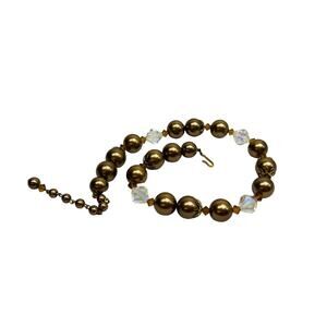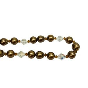 Vintage Lisner Necklace Choker Beaded Strand AB Crystal, Brown, Gold Tone 16 in
