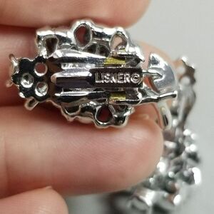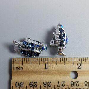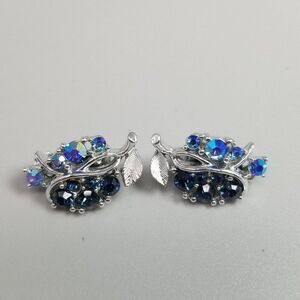 Vintage Lisner Silver Tone Light and Dark Blue Rhinestones AB Clip On Earrings