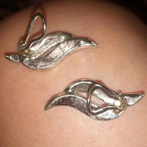 Vintage Lisner Style (no stamp) Silvertone Rhinestone Leaf-like Shape Clipons