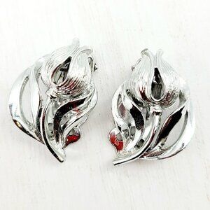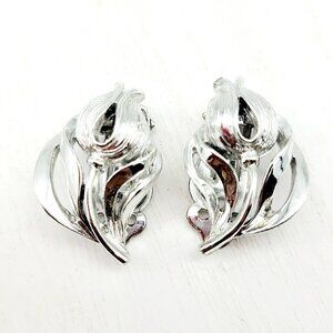Vintage Lisner Tulip Earrings Silver Tone Clip On Classic Timeless Collectible