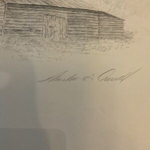 Vintage Lithograph Art Drawing Nature Log Cabin House Barn Signed #’d, Framed