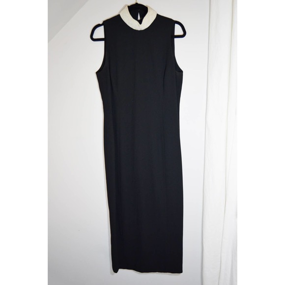 Vintage Little Black Dress Midi Evan Picone Beaded Collar Size 12