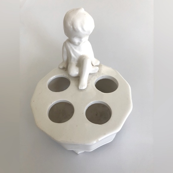 Adorable little child on this toothbrush or other object holder.