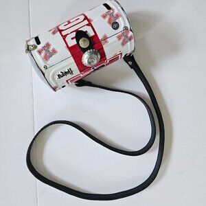 An awesome cross body bag from a Husker fan estate. Little Earth brand, Nebraska Husker purse, pre owned and in great vintage condition. Only signs of wear are minor fine scratches on silver metal round areas. See photos. Strap can be made to clip on purse to wear the purse horizontally or vertically. It. has a soft black lined interior. The strap measures approximately 45 inches in length. Non smoking pet free home.