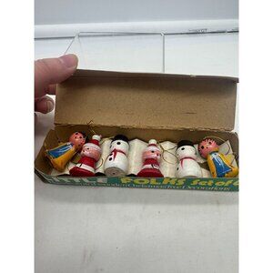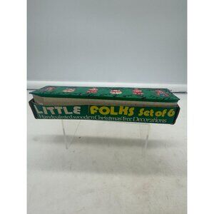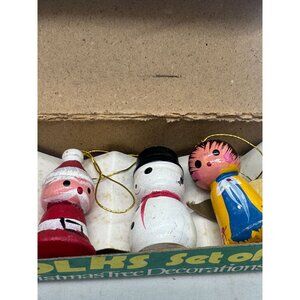 Vintage Little Folks Set of Six Handpainted Wooden Christmas Tree Ornaments in Box