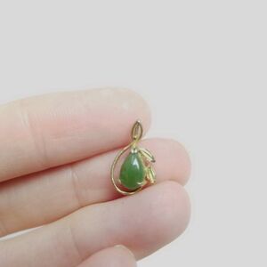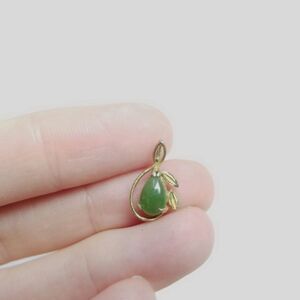 Vintage Little Green Pear Shaped Pendant Gold Tone Leaf Design Setting Charm