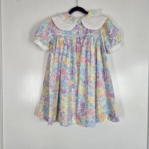 Vintage Little Grown Ups Girls Sz 6 Floral Pastel Dress White Collar Easter 80s