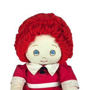 Bring home a piece of childhood nostalgia with this captivating vintage Little Orphan Annie plush doll! This huggable doll measures approximately 17 inches tall and features her signature red yarn hair, sweet embroidered face, and classic red dress.