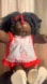 This charming doll features a vibrant red and white dress with delightful embroidery, perfect for imaginative play. The soft, cuddly design makes it a wonderful companion for children.