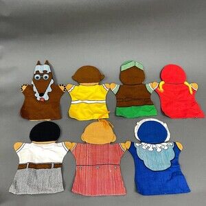 Vintage Little Red Riding Hood Grandma Wolf Hand Puppets Lot of 7