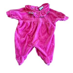 Vintage Little me Velour Pink Overall Pajama Footed Baby Girl Size 3M