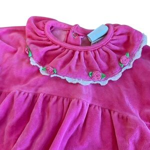 Vintage Little me Velour Pink Overall Pajama Footed Floral Collar Baby Girl 3M