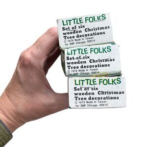 Vintage Little Folks Set Of 6 Hand-Painted Wooden Christmas Ornaments 1979 SET/3