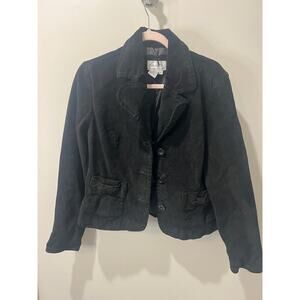 In great condition. This vintage piece includes a bow on the pockets and 3 buttons on the front. Put to put is 19 inches and length is 20.5 inches.