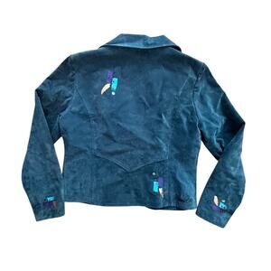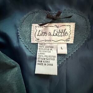 Vintage Live A Little Turquoise Womens Leather Jacket Size Large Blazer Coat
