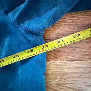 Turquoise Aqua Peacock Blue Suede Nubuck Leather Rhinestone Crystal Snap Buttons Blazer Jacket Coat Live A Little Size M Medium Fully Lined l Measurements approximate and on flat surface: P2P: 20", Length: 20.5".
