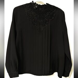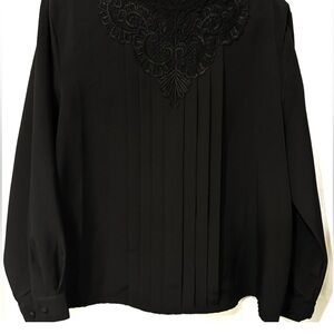 Vintage Liz Baker Essentials Black Women's Blouse with Lace Detail 80s/90s XL